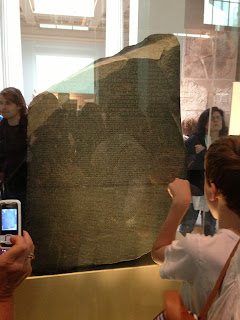 Royal Geographical Society (RGS), which is one of the coolest places ever!!!!! On the outside of the building, they have two statues of David Livingstone and Ernest Shackleton on the sides of what they call the "Hot and Cold Corner." We got to talk to the librarian there, and he showed us some of the items from their extensive collection of over 2 million items. Of those 2 million items, half are maps which means they have the largest private map collection in Europe (and maybe in the world). 2000 items are atlases, including their oldest atlas based on the work of Ptolemy and is from Germany in 1490. The picture collection includes 1/2 million pictures, mainly photographs that document the history of British exploration of India, Africa, Central Asia, and the Polar Regions during the 19th and early 20th centuries. Only about 15,000 are digitized, because they tend to digitize on an as-needed basis for user requests or for projects due to budgetary issues. They also have 20,000 glass lantern slides which were used to give lectures and presentations during the 19th century (kind of like PowerPoint is used now). The remainder of the collection includes 250,000 books and periodicals and the archives. The archives consists of letters, logbooks, journals, diaries, correspondence, collections relating to specific people (such as Livingstone) or specific expeditions (such as Mt. Everest), articles, fellowship certificates, membership lists, etc. The smallest part of the collection is, arguably, the most important--the objects and artifacts. They have 1500 artifacts in the collection, and these objects can be borrowed by other museums to go out on exhibit if the borrowing institution agrees to follow strict guidelines for handling and care.